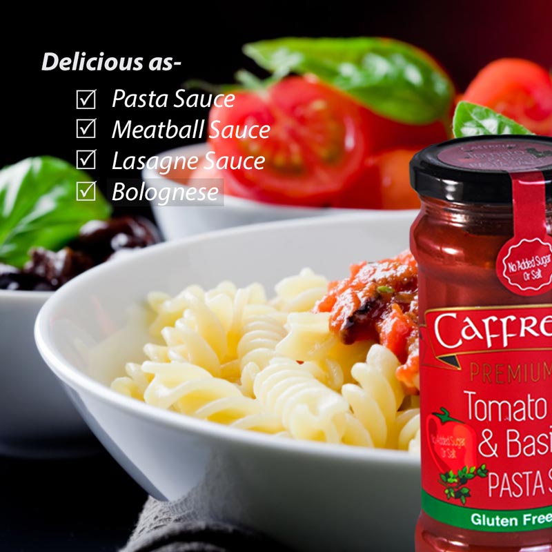 All of our sauces are Gluten Free. Our versatile Tomato & Basil Sauce can be used as a Pasta sauce, a Meatball sauce, a Lasagne sauce and as a sauce for Bolognese. While our Roasted Red Pepper sauce is delicious as a Meatball sauce, Pasta sauce, Dipping sauce or even as a Relish. These are just two of our fantastic Gluten Free products. For details of all of our current products click on the Product menu above - or click here.